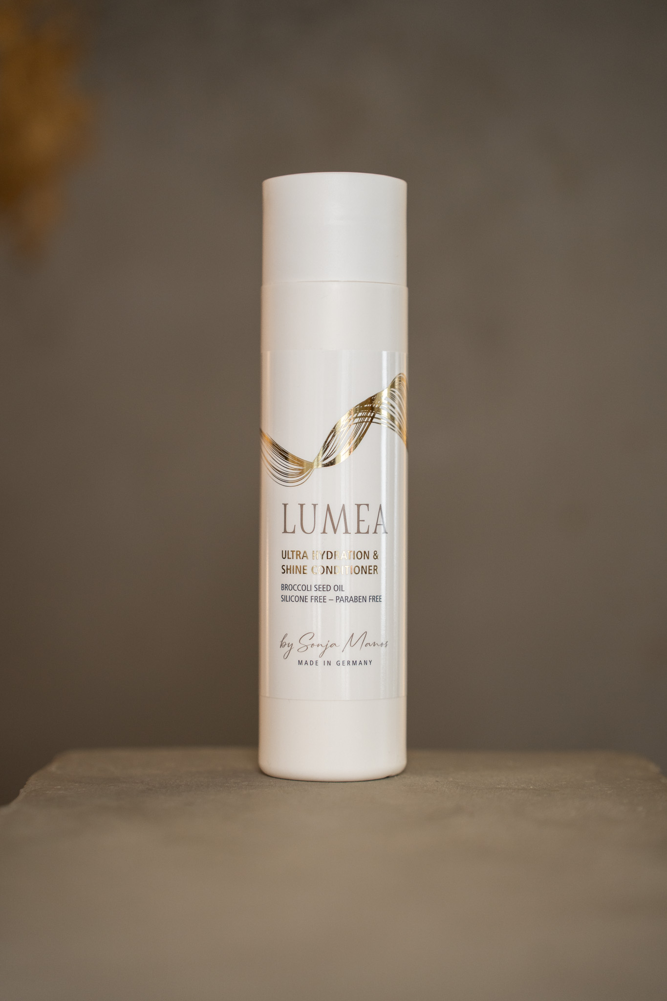 Der LUMEA Ultra Hydration & Shine Conditioner pflegt das Haar intensiv, schließt die Haarstruktur und verleiht sofortigen Glanz. Mit Brokkolisamenöl für mehr Feuchtigkeit, bessere Kämmbarkeit und seidige Geschmeidigkeit – silikonfrei & parabenfrei.